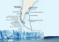 BUENOS AIRES (Argentina) - 2 dias - MONTEVIDEO (Uruguay), Navegacion - 2 dias - PORT STANLEY (Islas Malvinas), ESTRECHO DE MAGALLANES), CANAL DE COCKBURN, GLACIER ALLEY, CANAL DE BEAGLE, PUNTA ARENAS (Chile), USHUAIA (Argentina), Navegacion, CANAL SARMIENTO (Antarctica), FIORDOS CHILENOS, PUERTO MONTT (Chile), Navegacion, SAN ANTONIO (Santiago de Chile)