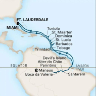 Miami -Florida-(EEUU), Philipsburg (St. Maarten), Castries (Santa Lucia), Scarborough (Tobago), Isla del Diablo (Guayana Francesa), RIO AMAZONAS (Brasil), Barra Norte Sea (Brasil), Barra Norte River (Brasil), Macapa (Brasil), Santarem (Brasil), Boca da Valeria (Brasil), 2 días en Manaos (Brasil) Parintins (Brasil) , Alter do Chao (Brasil), Barra Norte River, Barra Norte Sea (Brasil), Port of Spain (Trinidad), Bridgetown (Barbados), Roseau (Dominica), Tórtola (Antillas), Fort Lauderdale -Miami- (EEUU)