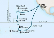 SAN DIEGO (EE.UU.), Navegación -5 días-, KONA (Hawaii), LAHAINA (Hawaii), HONOLULU (Hawaii) -2 días-, KAUAI NAWILIWILI (Hawaii), Navegación -3 días-, ISLA FANNING (Kiribati), Navegación -4 días-, RAIATEA (Polinesia Francesa), RAIATEA (Polinesia Francesa) -2 días-, PAPEETE (Polinesia Francesa) -2 días-, BAHÍA DE OPUNOHA (Morea) -2 días-, Navegación, FAKARAVE (Polinesia Fransea), Navegación, NUKU HIVA (Isla Marquesas), Navegación -8 días-, SAN DIEGO (EE.UU.)