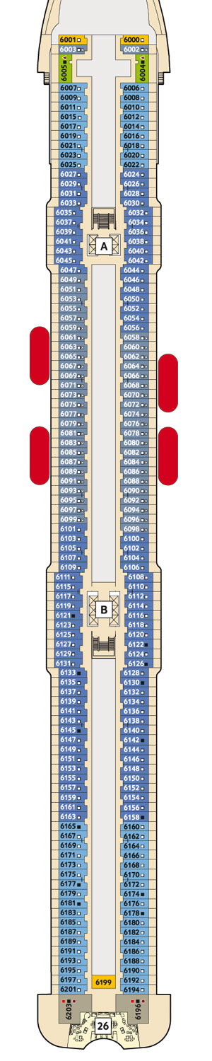 Las "Innenkabine" los camarotes interiores del Mein Schiff 1 ofrece una experiencia de crucero cómoda y elegante, con un espacio bien distribuido y equipado con comodidades modernas, todo ello en un ambiente de diseño contemporáneo. Por lo general, estos camarotes incluyen una o dos camas individuales o una cama doble, un baño privado con ducha, lavabo y WC, área de almacenamiento con armario, cajones y espacio para guardar equipaje, una pequeña área de descanso con mesa o escritorio y silla, y entretenimiento como un televisor de pantalla plana. Las dimensiones de los camarotes interiores pueden variar, pero en promedio suelen tener alrededor de 12 a 15 metros cuadrados de espacio habitable. ¡Reserva ahora y comienza tu aventura a bordo del Mein Schiff 1!