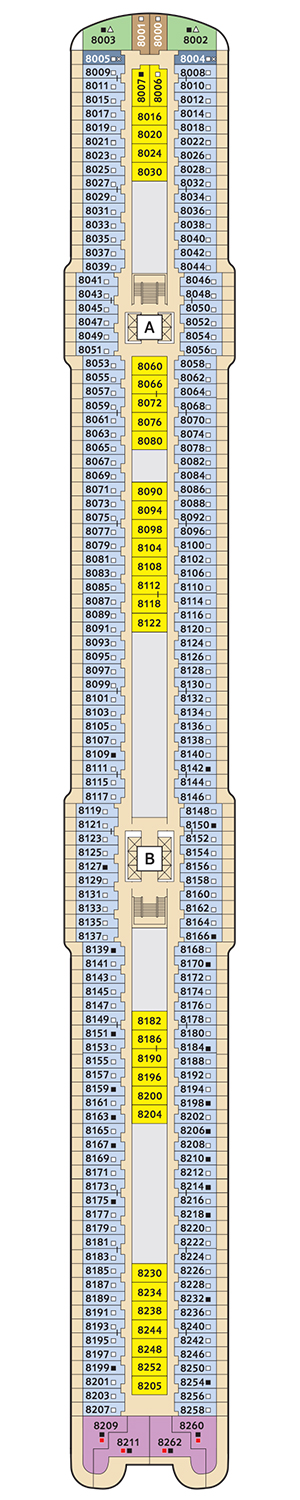 Las "Innenkabine" los camarotes interiores del Mein Schiff 1 ofrece una experiencia de crucero cómoda y elegante, con un espacio bien distribuido y equipado con comodidades modernas, todo ello en un ambiente de diseño contemporáneo. Por lo general, estos camarotes incluyen una o dos camas individuales o una cama doble, un baño privado con ducha, lavabo y WC, área de almacenamiento con armario, cajones y espacio para guardar equipaje, una pequeña área de descanso con mesa o escritorio y silla, y entretenimiento como un televisor de pantalla plana. Las dimensiones de los camarotes interiores pueden variar, pero en promedio suelen tener alrededor de 12 a 15 metros cuadrados de espacio habitable. ¡Reserva ahora y comienza tu aventura a bordo del Mein Schiff 1!