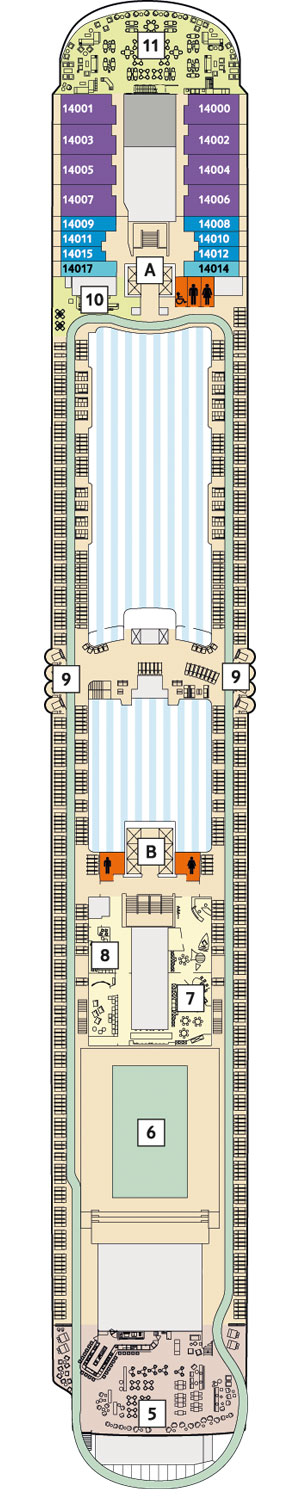La "Balkonkabine", la cabina exterior con balcón a bordo del Mein Schiff 1 ofrece una experiencia de crucero excepcional, combinando la comodidad de un camarote con las ventajas de un espacio al aire libre privado. Equipada con todas las comodidades modernas y un diseño contemporáneo, esta cabina típicamente incluye una o dos camas individuales o una cama doble, un baño privado con ducha, lavabo y WC, un área de almacenamiento con armario, cajones y espacio para guardar equipaje, una pequeña área de descanso con mesa o escritorio y silla, y entretenimiento como un televisor de pantalla plana. Además, el punto destacado de esta cabina es su balcón privado, donde los pasajeros pueden relajarse y disfrutar de las vistas al mar y a los destinos. Las dimensiones de las cabinas exteriores con balcón pueden variar, pero suelen tener un tamaño similar al de otros camarotes, alrededor de 15 a 20 metros cuadrados de espacio habitable más el espacio del balcón. ¡Reserva ahora y disfruta de la brisa marina desde tu propio balcón en el Mein Schiff 1!