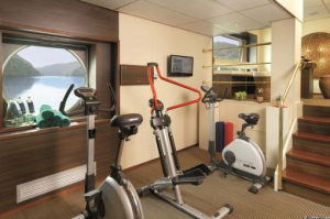 Cuide su salud y su figura ejercitando sus músculos en el gimnasio del buque.