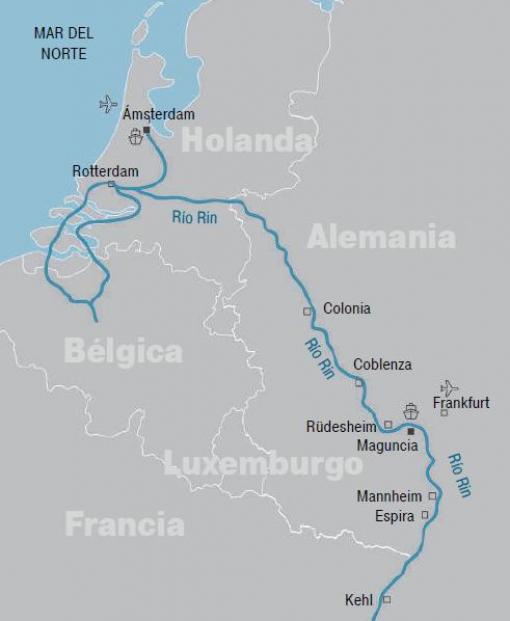 Es sin duda uno de los ríos más impresionantes de la Europa Central que nace en el lago Constanza (Suiza), pasa por la ciudad francesa de Estrasburgo y es en Alemania donde su belleza alcanza el máximo esplendor. Desde Maguncia y hasta Coblenza y Bonn el viajero simplemente no puede dejar de admirar los paisajes que se abren antes sus ojos. En cada roca, en cada monte hay castillos, ruinas o torres con negras y estrechas ventanas que te hacen sentir como si los siglos de historia te observaran a través de ellas. Descubra con nosotros las auténticas joyas que esconde el majestuoso río Rin a lo largo de su cauce.